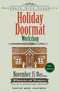 Bring a friend and join professional artist and illustrator Kim Wasson Tener of Bookmark Arts as she shows you how to hand-paint the most adorable tree farm or gingerbread house doormat. With the help of your instructor and easy patterns to follow, craft a simple, gorgeous custom doormat. It’s the perfect compliment to your festive holiday porch!